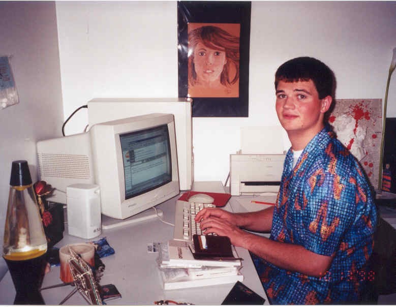 I’ll leave you with just a little flashback photo of a seventeen year old me — the exact moment I sent my first email. My yellow lava lamp had a pride of place on my bedroom desk, but I think my shirt was the real star of this show!